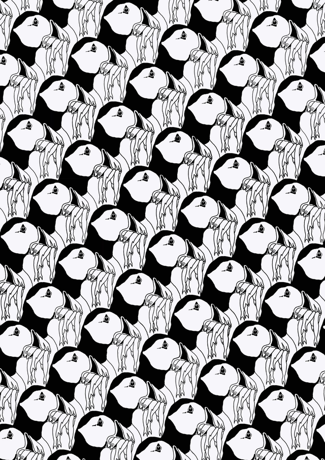 Silkscreen , handprinted puffin paper on medium weight white cartridge paper (140gms)